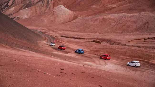 為了印證金彭新能源汽車在高溫下的涼爽和舒適性,下午3點(diǎn),金彭新能源汽車獅子座車隊(duì)在吐魯番匯合,準(zhǔn)備跨越熱浪,開展一系列嚴(yán)格的專業(yè)測試,包括暴曬測試、砂石路測試、揚(yáng)塵路測試、山路爬坡測試。勇者無畏,火煉真金,獅子座正式向火焰山發(fā)起挑戰(zhàn)。