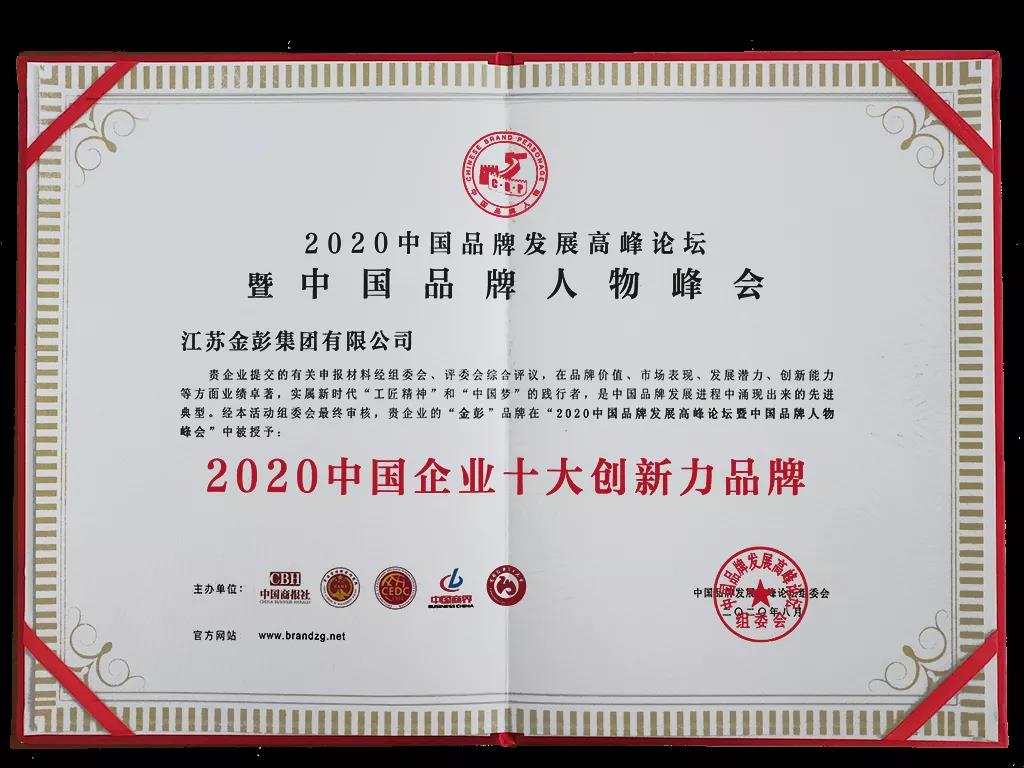 誰(shuí)為中國(guó)品牌贏得尊敬!金彭榮獲“2020中國(guó)企業(yè)十大創(chuàng)新力品牌”稱號(hào)