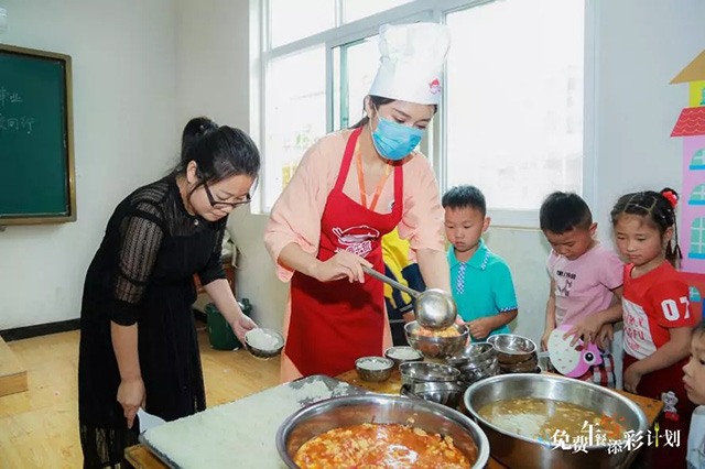 中國社會福利基金會秘書長繆瑞蘭作2019年度工作報告2017年,金彭集團與免費午餐達成三年戰略合作,計劃每年出資不少于100萬元為鄉村地區兒童提供免費午餐。按每人每餐4元的標準,預計3年累計受惠學童75萬人次。合作兩年來,金彭不斷踐行愛心責任,定向捐助學校已達12所,期間,金彭與免費午餐基金還共創了“添彩計劃”公益行動,在為愛烹飪、鄉村地區兒童溫飽的基礎上,向全社會號召愛心人士“為愛添彩”,給鄉村地區兒童送去知識書籍、傳授手工課程,帶領鄉村地區兒童開拓視野、感受多彩世界。